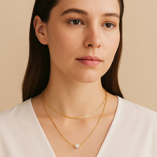Flat Chain Pearl Necklace