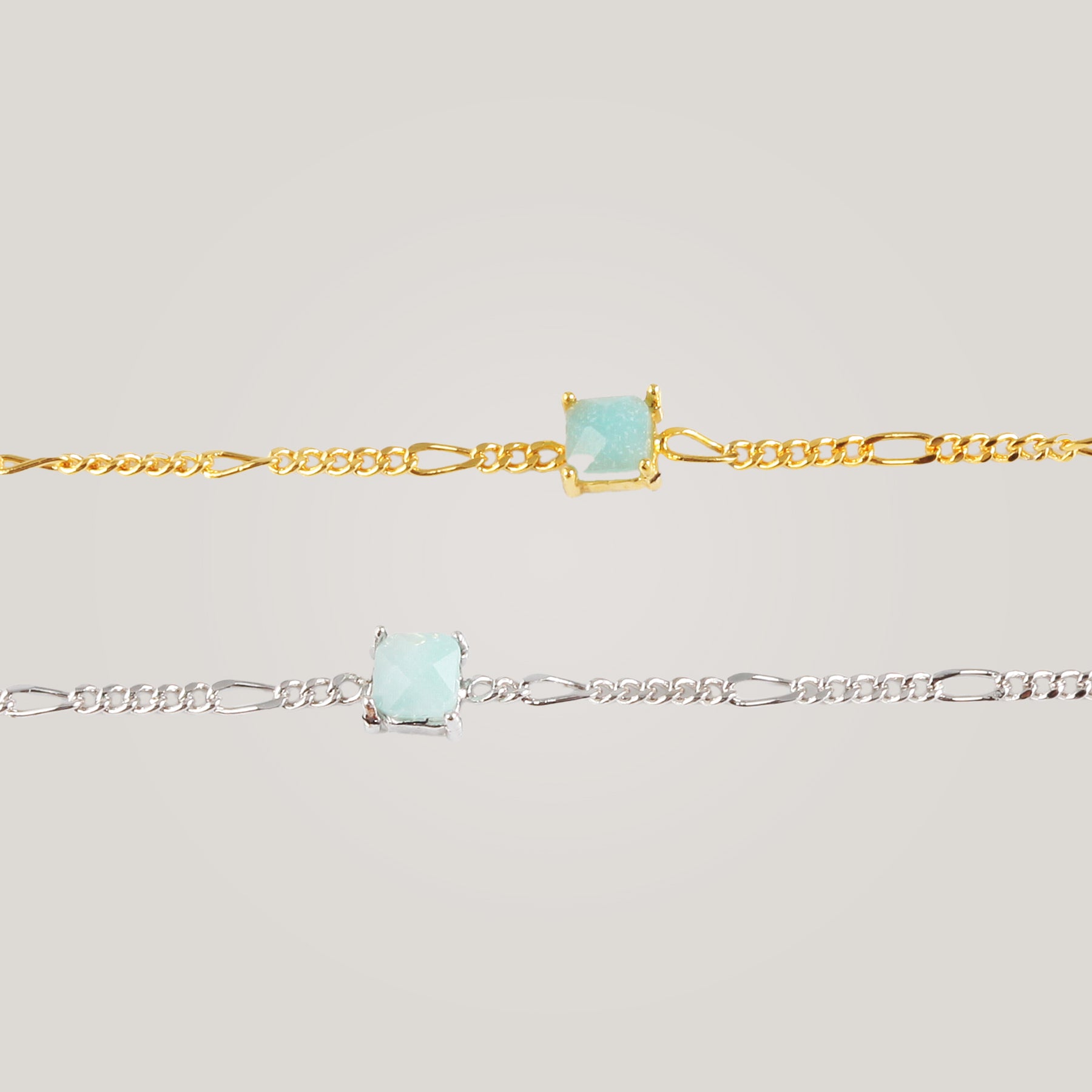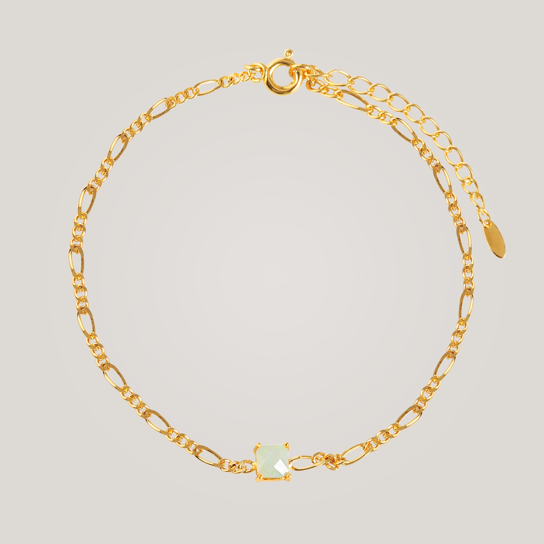 A delicate chain bracelet accented with a single mint-hued stone, offering a touch of freshness and elegance.